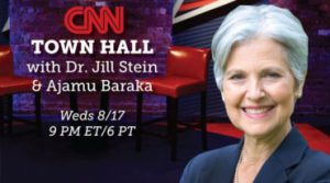CNN—[15 AUG 2016] CNN announced Wednesday it will host one of its town hall events with the Green Party’s presidential nominee Jill Stein and her running mate, Ajamu Baraka.
