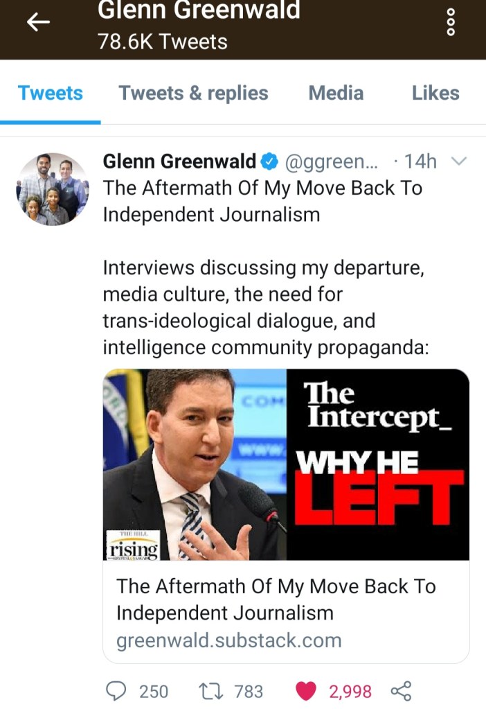 Even though Greenwald had nothing but nice things to say about his friends, who stayed on at The Intercept, the next important question some of us will focus on is: