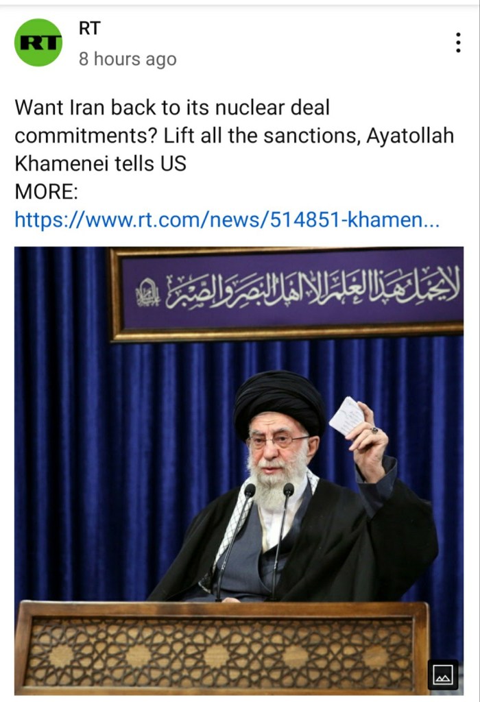 “In 2018, Donald Trump withdrew the US from the nuclear deal with Iran, which included the country promising to limit its atomic work in exchange for the lifting of economic sanctions.” So, the Iranian Ayatollah Khamenei responded to the USA, “Want Iran back to its nuclear deal commitments? Lift all the sanctions” imposed by Mr. Trump in contravention to the 2015 agreement. But the Biden administration simply said, no, in bad faith, basically, gaslighting Iran about the 2018 violation. And, worse, now Mr. Biden is demanding that Iran stop enriching uranium, before the U.S. will agree to lift economic sanctions, or restrictions. Of course, “enriched uranium is a critical component for both civil nuclear power generation and military nuclear weapons.” But the problem is, again, bad faith; the U.S. government has proven itself untrustworthy on the world stage, in international relations, because it broke its promises again. And now they’re making additional demands after having broken past promises. In the psychology literature, which specializes in narcissistic abuse as well as in the study of logical fallacies, this is known as moving the goal post. When your opponent constantly moves the goal post, you always lose. So, you must never allow your opponent to move the goal post on you. Or else you will be cheated out of a fair contest.
