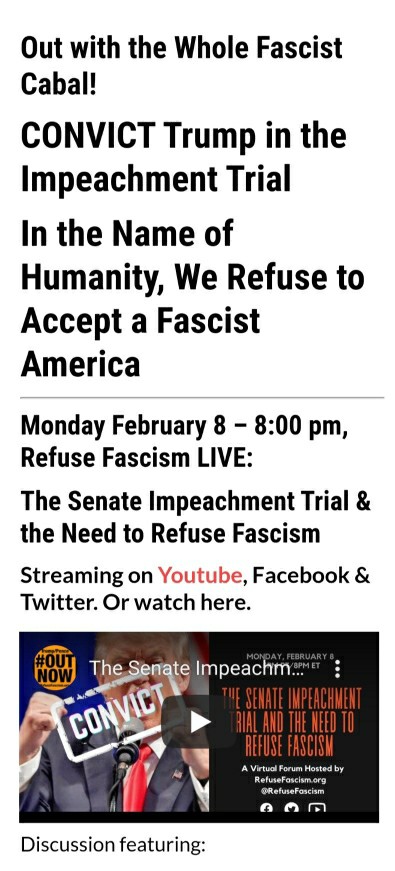 10:00 PST, KPFA [Berkeley] & KPFK [L.A.] > Letters and Politics > Frank Bowman University of Missouri – Law, expert on impeachment law. Bowman’s focus was historical, opening with an overview of the impeachment process in the academic and historical realms. 1012 “That era signaled the beginning of […] divided politics […] ‘And we do we make of Trump, who has been twice impeached, but not indicted once.’ […] ‘In Trump’s case, he’s the guy, who the original legislators, or “framers”, were worried about.’ […] ‘So, that is a sad reflection on our body politic.’ […] ‘Is it possible to pull us back from the brink?’ […] “the Republican Party” […] ‘Maybe we’re on a downward spiral to who knows what.’ […] 10:16 PST, ‘What about Justice John Roberts?‘ […] 10:22 PST, ‘If he were to be convincted, which he won’t […] ‘But, let’s say, […] impeach a Dem pres or subordinate official […] in such case the court might consider if there was some statute of limitations […] ‘But this guy, if […] the court’s not gonna touch it.’ […] 10:24 PST, ‘It all may be over by as early as this weekend. Is there still meaning to this case? Does it still matter?’ […] 10:25 PST, ‘Well, yeah, this was, basically, an attempted coup, so blah, blah, blah, bourgeois, mealy-mouthed bullshit.’ […] 10:26, “But beyond that, lighting might strike.” ‘And that would be great.’ […] ‘And, beyond all that, it’s important to lay out an accurate narrative of what happened.’ […] 10:27 PST, this is starting to sound like a re-reun. If memory serves, KPFA is starting a fund drive this week. […] 10:28 PST, ‘Here you have the Democratic Party, essentially, protecting the Republican Party.’ Good point, Mitch! 🤚 […] ‘The problem is not the political parties, it’s these political parties we have.’ Indeed. It’s a pity Mitch Jeserich didn’t also point out the polarizing nature of two-party systems, generally. That would have really exposed the Democrat Party. > 10:32 PST, Amanita Umabeo(sp?), zoom call. […] 10:36 PST, ‘I was asking my producer, Deanna Martinez, if it was even worth our time to broadcast the impeachment trial, knowing it’s already a lost cause. And she was adamant that, yes, it was.’ […] 10:38 PST, ‘What does accountability mean?’ […] ‘So, now, we can’t just sweep things under the rug.’ Tell him, Amanita. 10:39 PST, ‘On the contrary, you actually make things worse’ […] “state capture” […] 10:40 PST, […] 10:42 PST, ‘How did Spain come to terms with its Franco past?’ […] 10:42 PST, ‘Well, Spain was very divided, like we have seen in the past three or four years in the United States.’ […] 10:43 PST, 1052 “the elimination of a news room” “and, then, we’ve lost other positions”, such as “the program director”. “And KPFK is on the brink of going under.” ‘But, basically, if we don’t raise additional funds […] we will lose this. And, if we lose this, we will not get it back.” […] And, we’re asking you to not allow that to happen.”