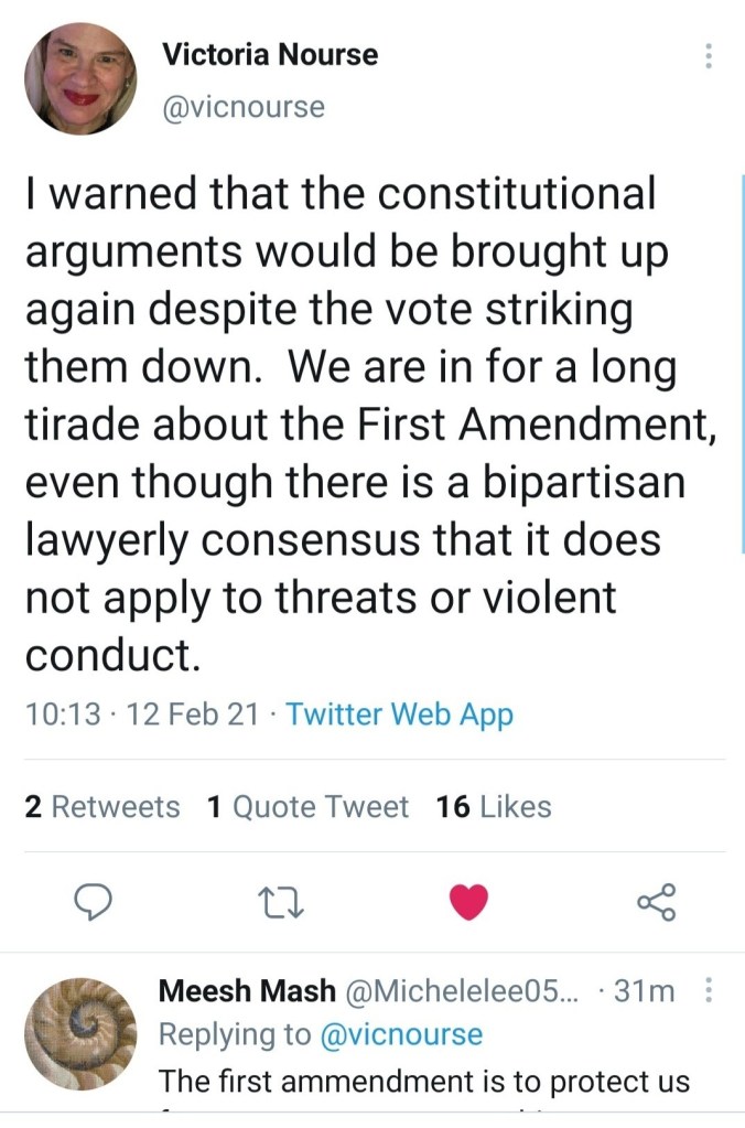 We repeat, this is not a legal trial. This is Senatorial tragedy. This is Senatorial political theater. The performances by the prosecution and the defense were not designed to persuade each other, as various experts corroborate. The performances of the defense were purely heuristic propaganda, red meat for the base. Similarly, the performances by the prosecution were not designed to persuade Republicans to cross over to the other side because there is no jury, no real evidence to consider. Indeed; we heard Mr. Van Der Veen reject whole cloth the entirety of the evidence presented by the prosecution as “hearsay”, using unscrupulous legalese and technicalities to abuse the rule of law, through semantical games and gaslighting, in order to subvert the rule of law. We reject the entire premise.