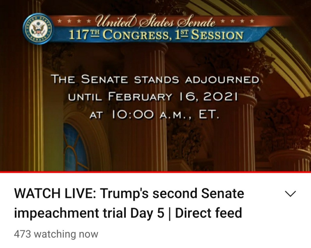 “WATCH LIVE: Trump’s second impeachment trial underway in the Senate | Day 5,” by PBS NewsHour 13 FEB 2021.