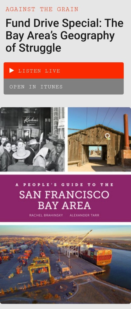 12:00 PST, KPFA > ATG | News | […] ‘a geographer discusses a legacy’ […] “critical geography” […] 12:12, ‘struggles by people of color” “struggles by women” geographer ‘Rachel Brizinski(sp?)’ […] 1234, ‘Chicano activists in the ’60s’ […] ‘But now its a park’ […] 12:42, ‘We were very influenced by the Black Lives Matter movement’ […] ‘We talk about Alex Nieto Park. It was also a story of gentrification’ and police terrorism, or behavior, like the Spanish Inquisition, to send a message to the lumpenproletariat. This is what we can do to you, not only if you step out of line, but if we do. […] THIS IS A FUND DRIVE BROADCAST. PLEASE SUPPORT FREE SPEECH RADIO KPFA. PLEASE DONATE TODAY.