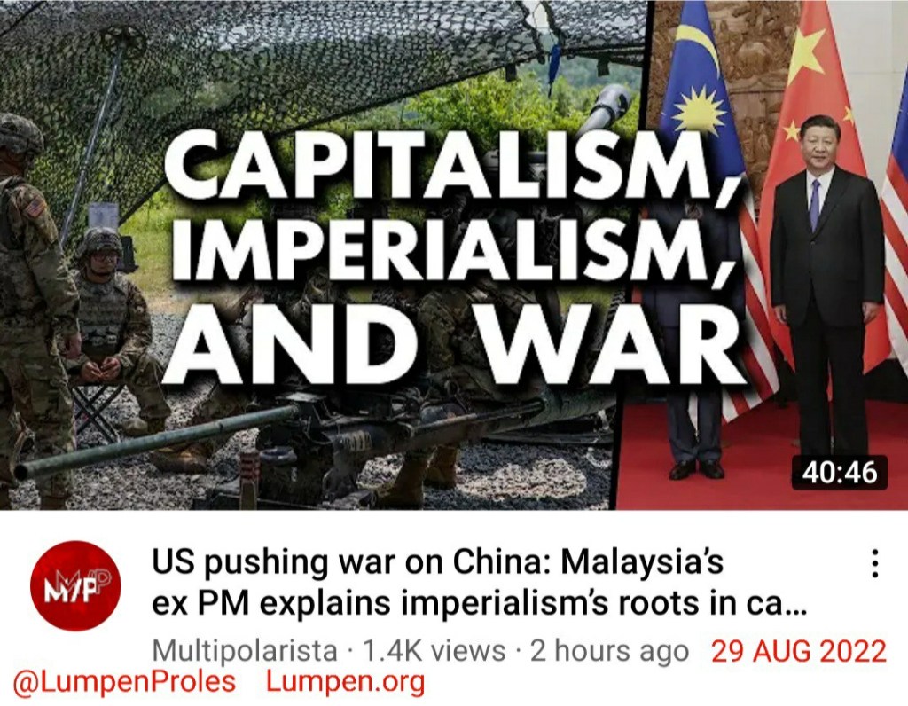 “US pushing war on China: Malaysia’s ex PM explains imperialism’s roots in capitalism” by Multipolarista [via YouTube], 29 AUG 2022.