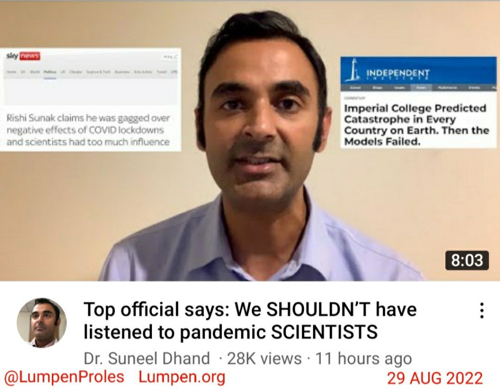 “Top official says: We SHOULDN’T have listened to pandemic SCIENTISTS” by Dr. Suneel Dhand [via YouTube], 29 AUG 2022.