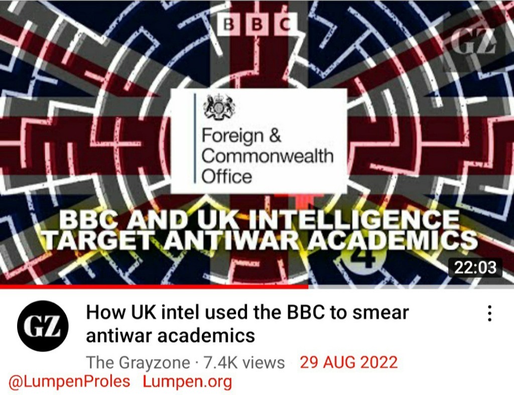 - “How UK intel used the BBC to smear antiwar academics” by The Grayzone, 29 AUG 2022. (Additional notes on this topic below.)
