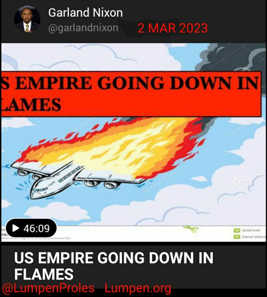 “US EMPIRE GOING DOWN IN FLAMES” by Garland Nixon [via Rokfin], 2 MAR 2023. [46min 09sec] [06:35 PST]