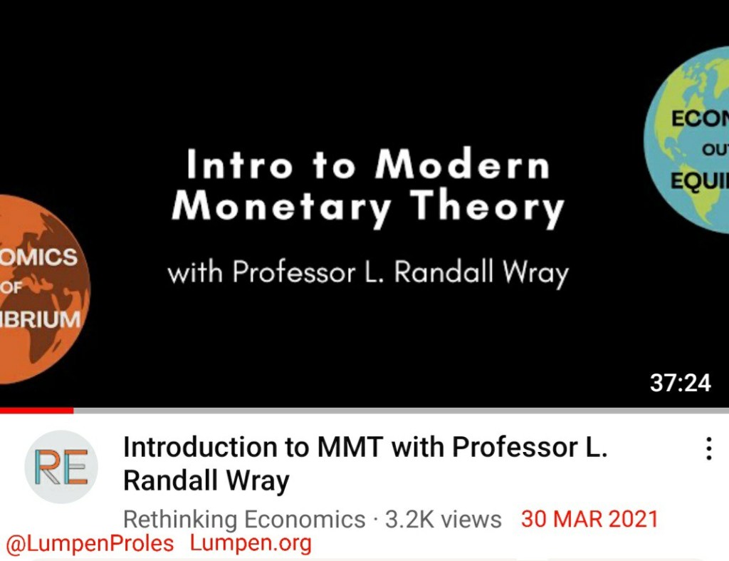 “Introduction to MMT with Professor L. Randall Wray” by Rethinking Economics [via YouTube], 30 MAR 2021. [37min 23sec]