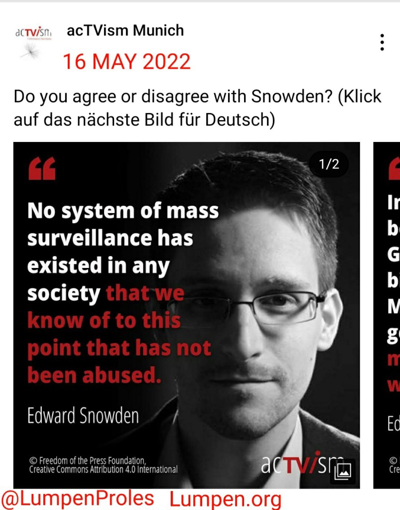 We need to support and defend and liberate whistleblowers, journalists, and others, like Edward Snowden, Julian Assange, and Mumia Abu Jamal, to encourage others to follow in their footsteps, knowing that the people will always have their back, and not cut and run, or abandon them when the despotic state comes down on them.