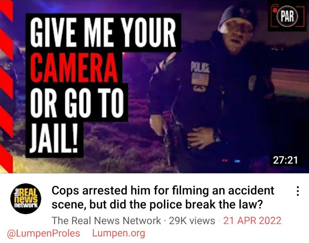 “Cops arrested him for filming an accident scene, but did the police break the law” by The Real News Network [The Police Accountability Report], 21 APR 2022.
